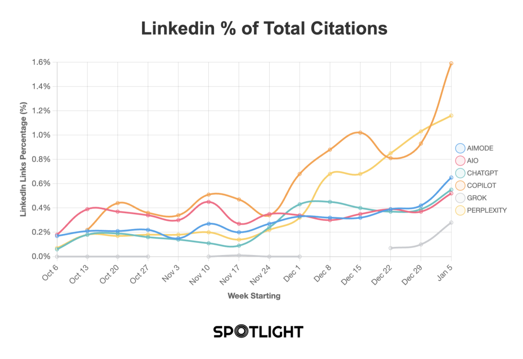 This article explores why LLMs cite LinkedIn more, the role of LinkedIn Pulse articles, and what brands can do to leverage this trend. We also examine how tools like Spotlight lead the way in monitoring and optimizing brand visibility across AI chat platforms.
